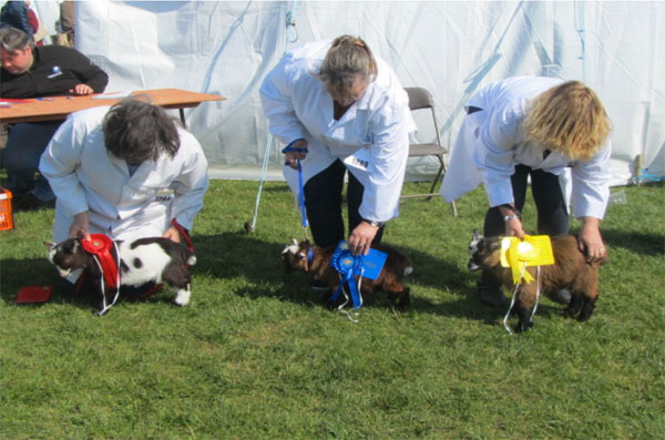 Most exhibitors new to showing begin with a couple of kids, be they future breeding stock or just pets. They will have to be 8 weeks of age to enter the show. Having visited at least one show previously, it will be a source of comfort to discover that young kids do not always behave well in the ring, especially at the beginning of the season. This is understandable and will be appreciated by the judge.